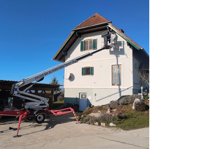 Du willst hoch hinaus? Wir helfen dir dabei. Mit unserer Arbeitsbühne Dino 210 xt unterstützen wir dich bei Reinigungs-, Montagetätigkeiten oder sonstigen Tätigkeiten in bis zu einer Höhe von 21 m und mit bis zu 11 m seitlicher Reichweite. Mittels Rangierantrieb ist der Dino auch an engen Stellen gut verwendbar. Auf Wunsch wird die Bühne auch zugestellt. Bei Fragen melde dich gerne. Für Privat und Gewerbe. Rechnungslegung mit Umsatzsteuer, UID-Nr. vorhanden. |